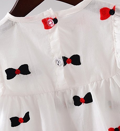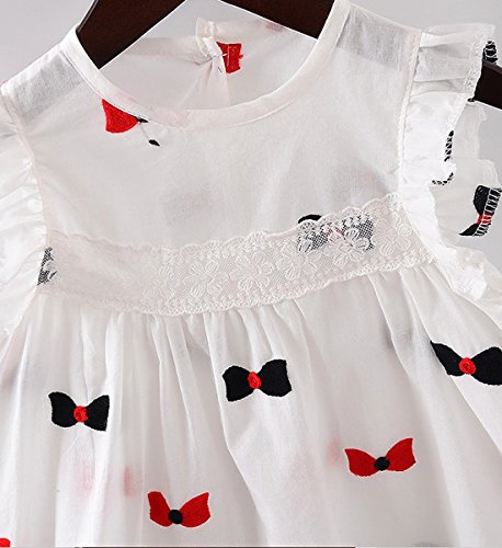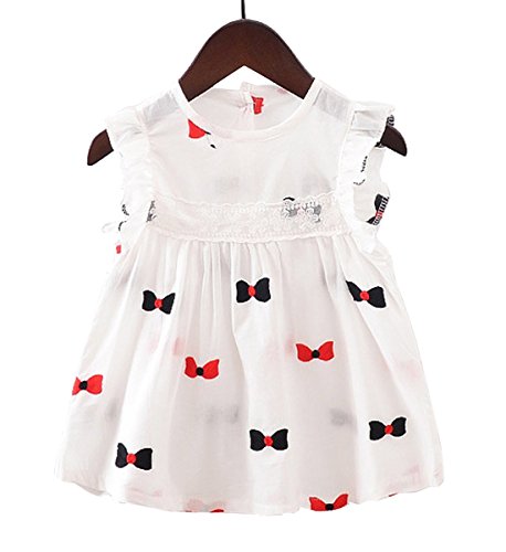 YY-Natuhi ベビー服 子供服 女の子 ワンピース 白 ドレス キッズ 女児 かわいい ふわふわ スカート 入園式 卒園式 赤ちゃん 七五三 発表会 ベビースーツ 春夏 ノースリーブ リボン柄 レース (80cm)