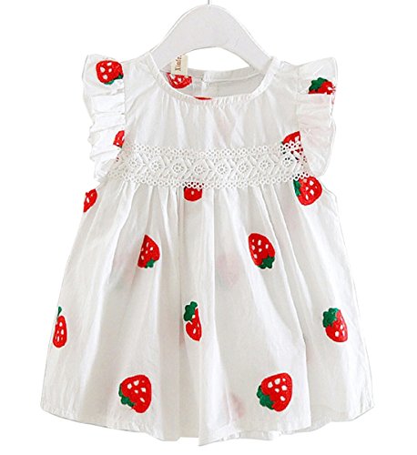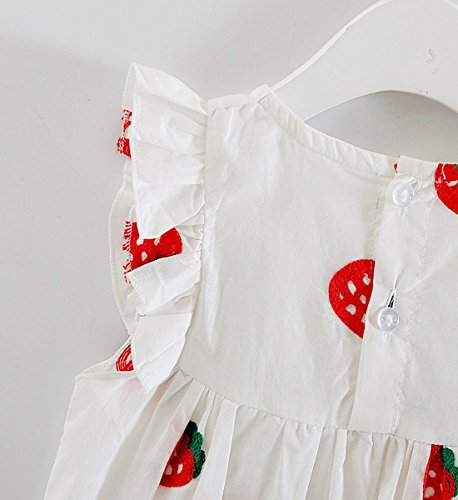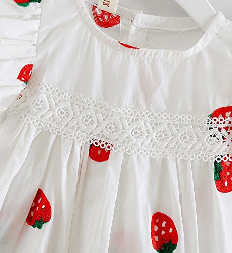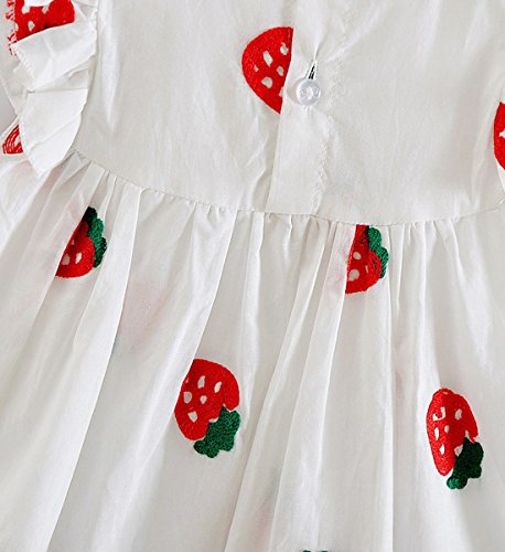 YY-Natuhi ベビー服 子供服 女の子 ワンピース 白 ドレス キッズ 女児 かわいい ふわふわ スカート 入園式 卒園式 赤ちゃん 七五三 発表会 ベビースーツ 春夏 ノースリーブ イチゴ柄 レース (80cm)