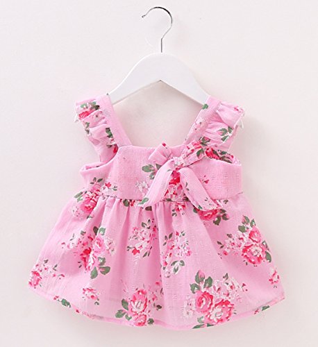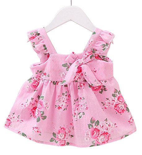YY-Natuhi ベビー服 子供服 女の子 ワンピース ドレス キッズ 女児 かわいい ふわふわ スカート 入園式 卒園式 赤ちゃん 七五三 発表会 ベビースーツ 春夏 ノースリーブ 花柄 フレア (85cm, 2ピンク)