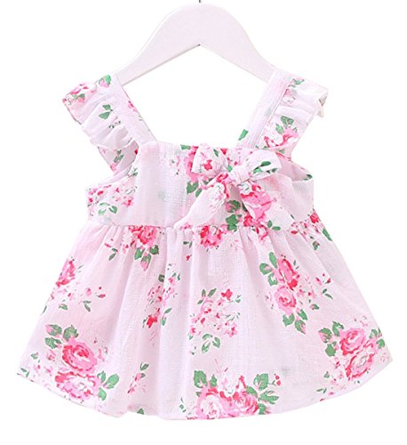 YY-Natuhi ベビー服 子供服 女の子 ワンピース ドレス キッズ 女児 かわいい ふわふわ スカート 入園式 卒園式 赤ちゃん 七五三 発表会 ベビースーツ 春夏 ノースリーブ 花柄 フレア (80cm, 1ホワイト)