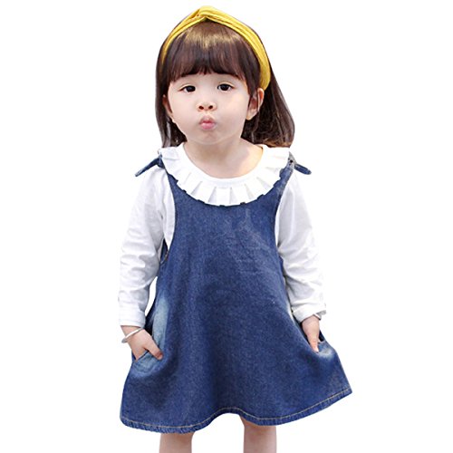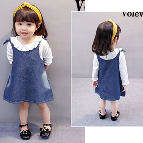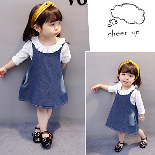 YY-Natuhi ベビー服 子供服 女の子 デニムワンピース ブラウン 二点セット 新生児 サロペット スカート 長袖 ボディースーツ キッズ ベビー 赤ちゃん 80~110cm 秋冬 入学式 入園式 七五三 (100cm(身長85~95cm))