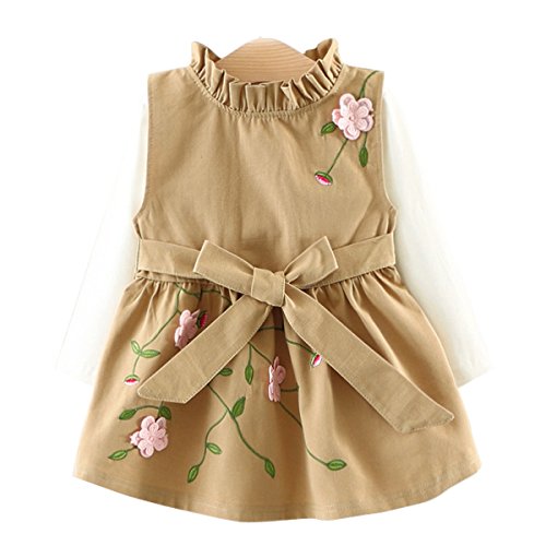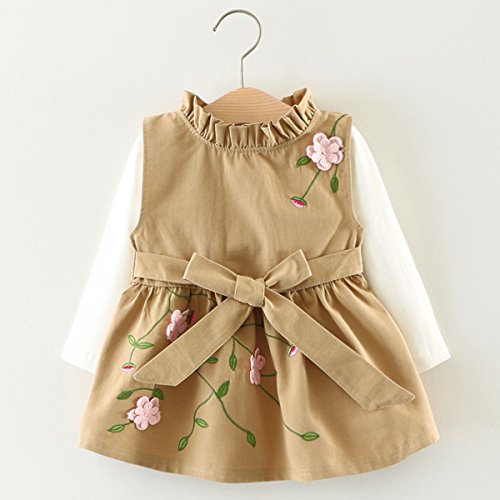 YY-Natuhi ベビー服 子供服 女の子 ワンピース ブラウン 二点セット サロペット キッズ スカート 新生児 ボディースーツ ベビー 長袖 赤ちゃん 入学式 出産祝い 七五三 綿 花柄 秋冬 (90cm, 1カーキ色)