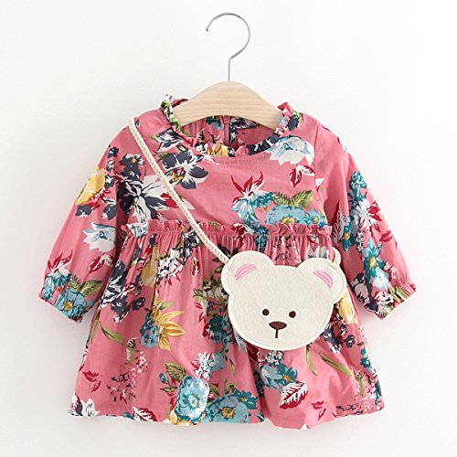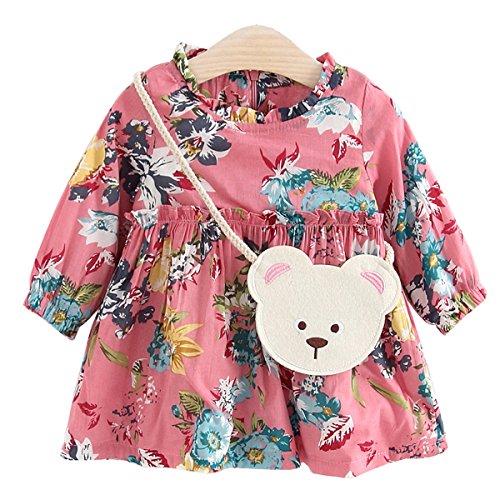 YY-Natuhi ベビー服 子供服 女の子 ワンピース キッズ ドレス 新生児 ボディースーツ ベビー 長袖 赤ちゃん 入学式 出産祝い 七五三 綿 花柄 ベビースーツ 秋冬 クマバッグ付き (95cm, 1ダークピンク)