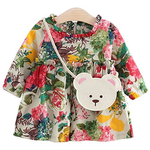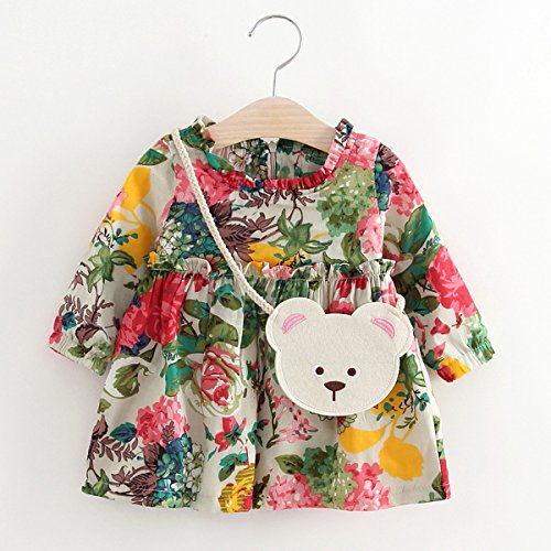 YY-Natuhi ベビー服 子供服 女の子 ワンピース キッズ ドレス 新生児 ボディースーツ ベビー 長袖 赤ちゃん 入学式 出産祝い 七五三 綿 花柄 ベビースーツ 秋冬 クマバッグ付き (80cm, 2グリーン)