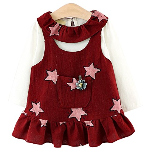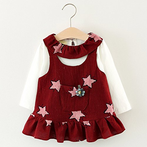 YY-Natuhi ベビー服 子供服 女の子 ワンピース ブラウン 二点セット サロペット キッズ スカート 新生児 ボディースーツ ベビー 長袖 赤ちゃん 入学式 出産祝い 七五三 綿 星柄 秋冬 (80cm, 2ワインレッド)