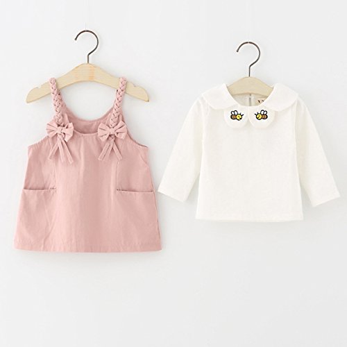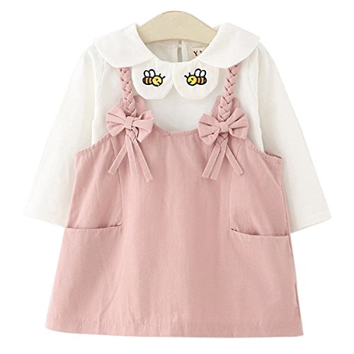 YY-Natuhi ベビー服 子供服 女の子 ワンピース ブラウン 二点セット サロペット スカート トップス キッズ 新生児 ベビー 長袖 赤ちゃん 綿 秋冬 入園式 かわいい ハチ (100cm, 1ピンク)