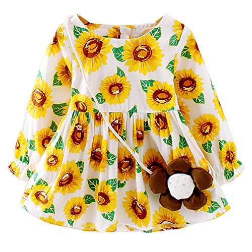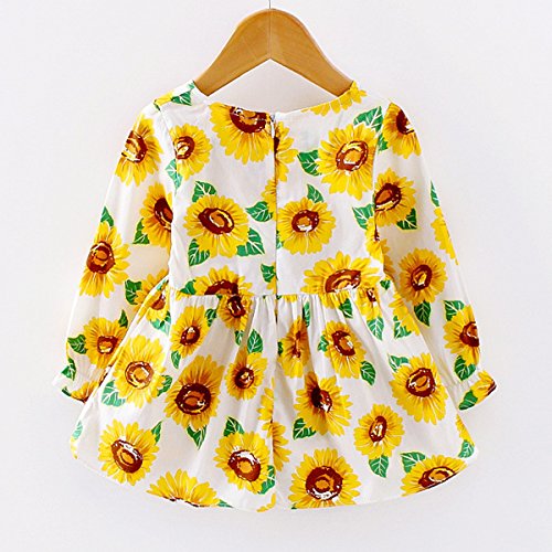 YY-Natuhi ベビー服 子供服 女の子 ワンピース キッズ ドレス 新生児 ボディースーツ ベビー 長袖 ベビースーツ 秋冬 かわいい 綿 向日葵柄 赤ちゃん 入園式 入学式 七五三 (80cm)