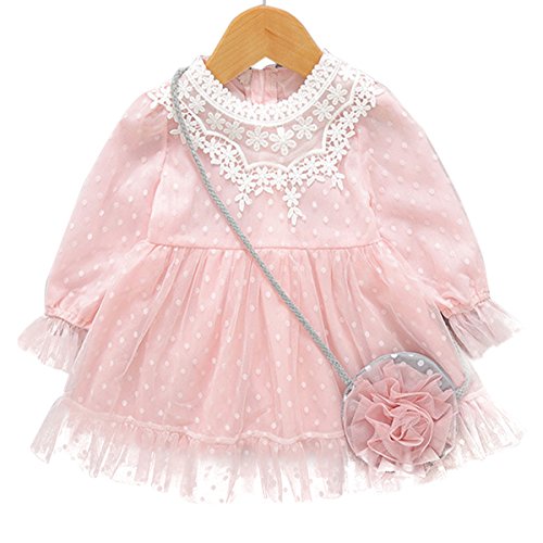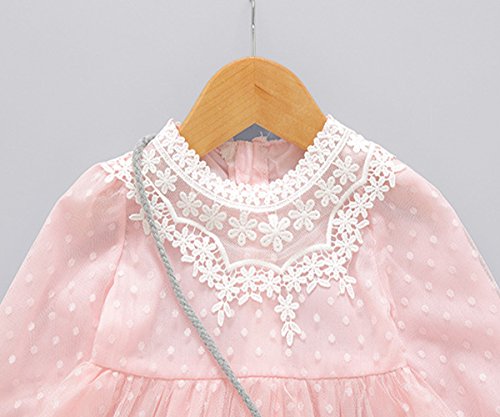 YY-Natuhi ベビー服 子供服 女の子 ワンピース キッズ ドレス 新生児 ボディースーツ ベビー 長袖 ベビースーツ 秋冬 かわいい 赤ちゃん 入園式 入学式 ピンク レース 水玉チュール (80cm)