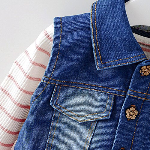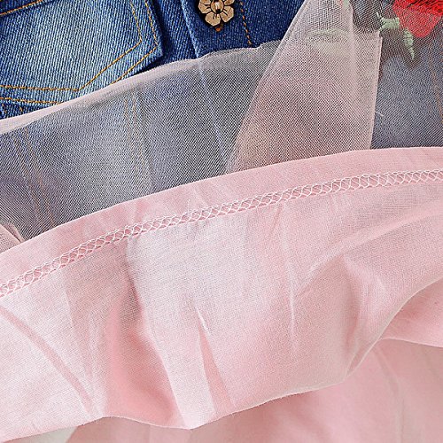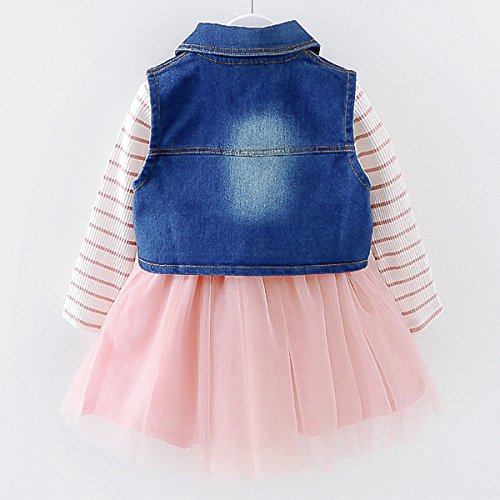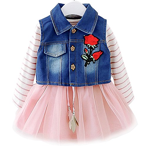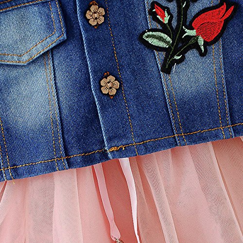 YY-Natuhi ベビー服 子供服 女の子 ワンピース デニムチョッキ 二点セット チュール スカート ふわふわ キッズ アウター コート かわいい 新生児 長袖 フオーマル 秋冬 バラ (120cm(身長105~115cm), 3ピンク)