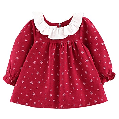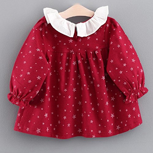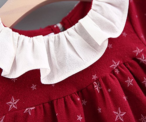 YY-Natuhi ベビー服 子供服 女の子 ワンピース キッズ ドレス 新生児 ボディースーツ ベビー 長袖 ベビースーツ 秋冬 かわいい 綿 赤ちゃん 入園式 入学式 星柄 フリル (100cm, 1レッド)