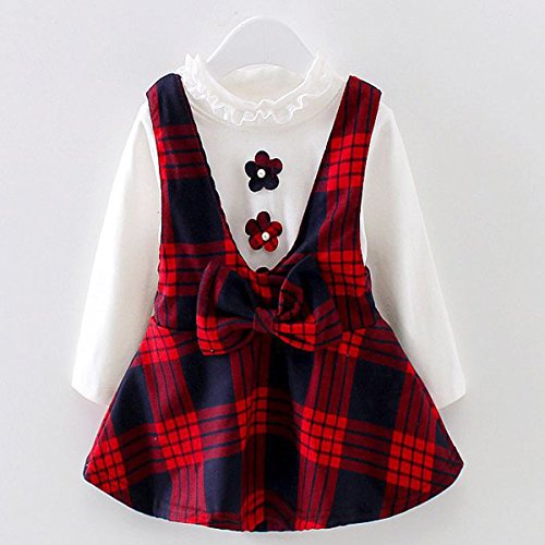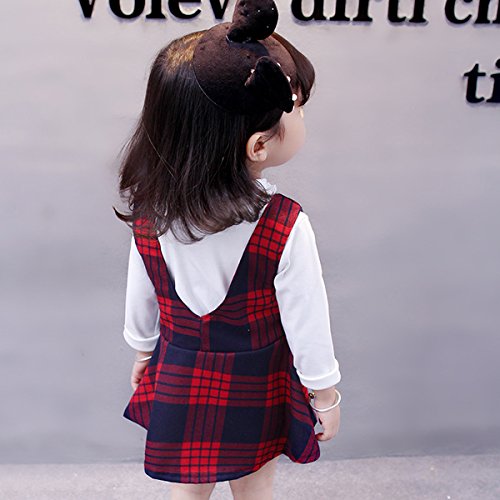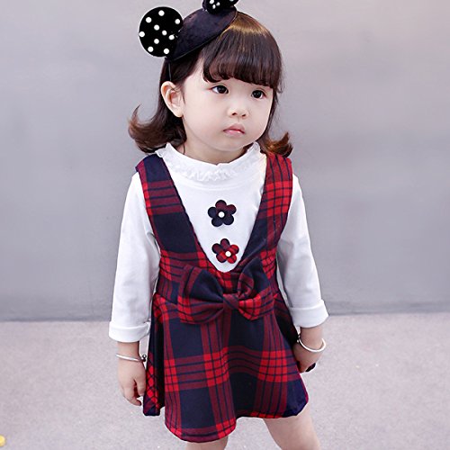YY-Natuhi ベビー服 子供服 女の子 ワンピース シャツ トップス 二点セット キッズ服 チェックワンピース ブラウス 長袖 新生児 かわいい フオーマル 秋冬 入園式 発表会 結婚式 (80cm(身長70~80cm), 2レッド)