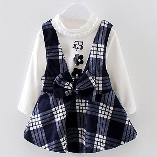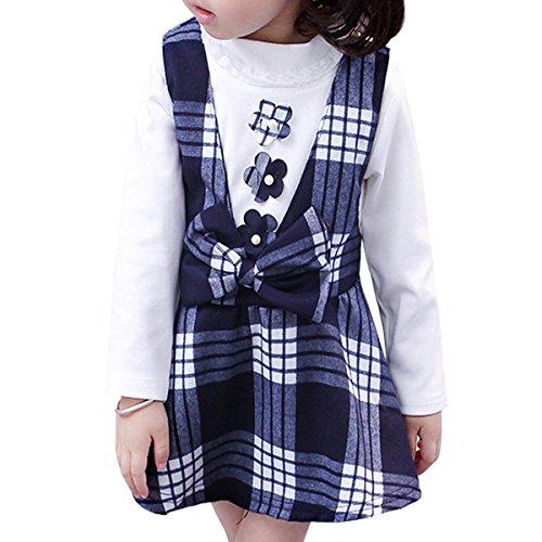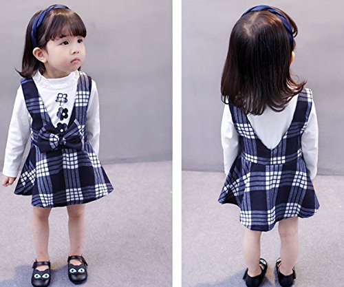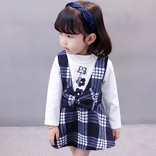 YY-Natuhi ベビー服 子供服 女の子 ワンピース シャツ トップス 二点セット キッズ服 チェックワンピース ブラウス 長袖 新生児 かわいい フオーマル 秋冬 入園式 発表会 結婚式 (80cm(身長70~80cm), 1ブルー)