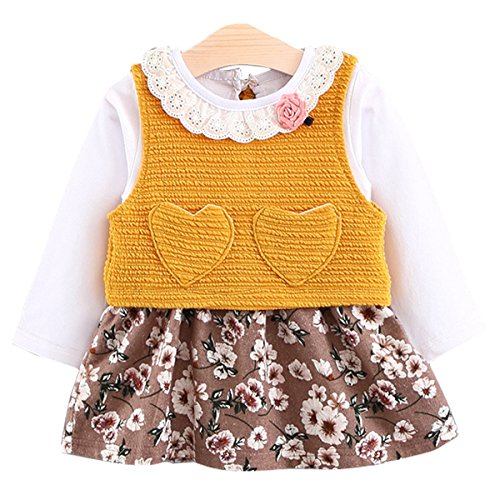 YY-Natuhi ベビー服 子供服 女の子 ワンピース ニットチョッキ 二点セット 花柄 スカート ふわふわ キッズ アウター コート かわいい 新生児 長袖 シャツ レース襟 秋冬 (85cm, 2イエロー)