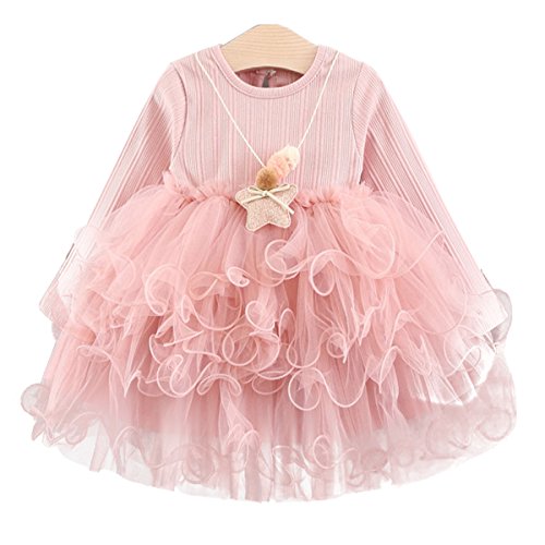 YY-Natuhi ベビー服 子供服 女の子 ワンピース キッズ ドレス 新生児 ベビー 長袖 ベビースーツ 秋冬 かわいい 赤ちゃん 入園式 入学式 フォーマル ニットセーター チュールワンピース (70cm, 1ピンク)
