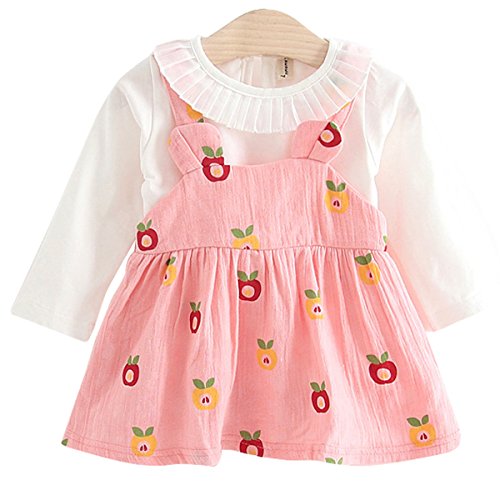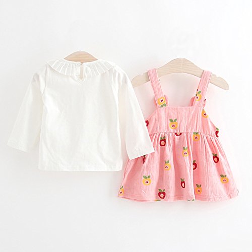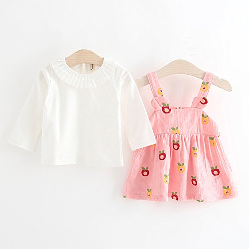 YY-Natuhi ベビー服 子供服 女の子 シャツ ワンピース 二点セット サロペット スカート キッズ服 新生児 秋冬 長袖 スーツ ブラウス トップス かわいい 入園式 結婚式 リンゴ柄 (80cm, 1ピンク)