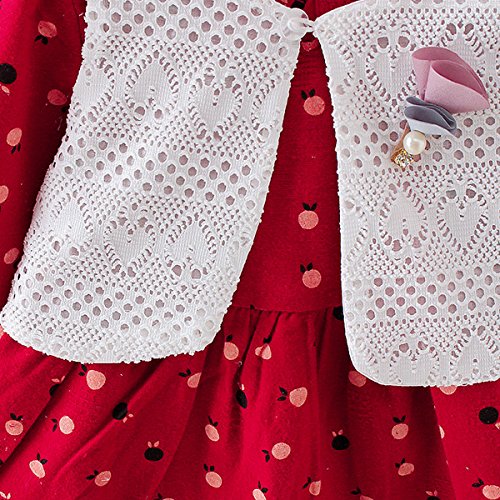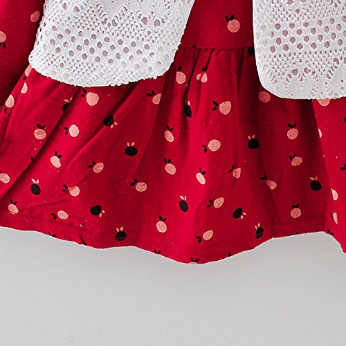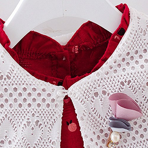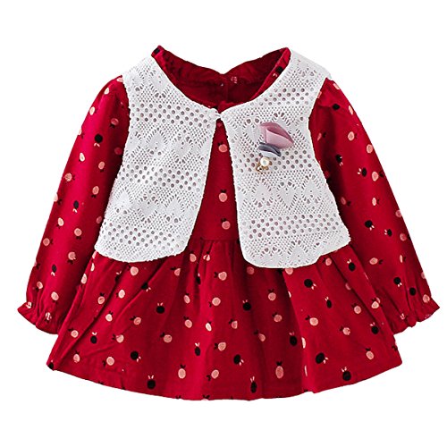 YY-Natuhi ベビー服 子供服 女の子 ワンピース レースチョッキ 二点セット 水玉 スカート ふわふわ キッズ アウター コート かわいい 新生児 長袖 シャツ 秋冬 (100cm(身長80~90cm), 2レッド)