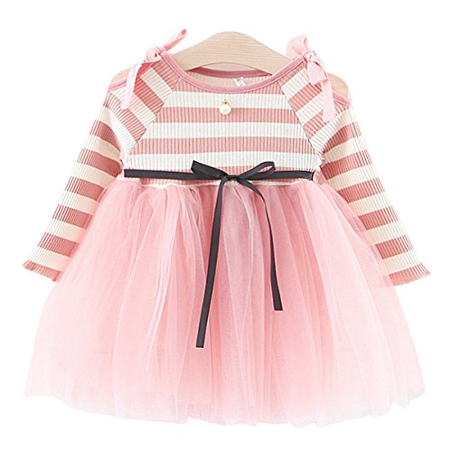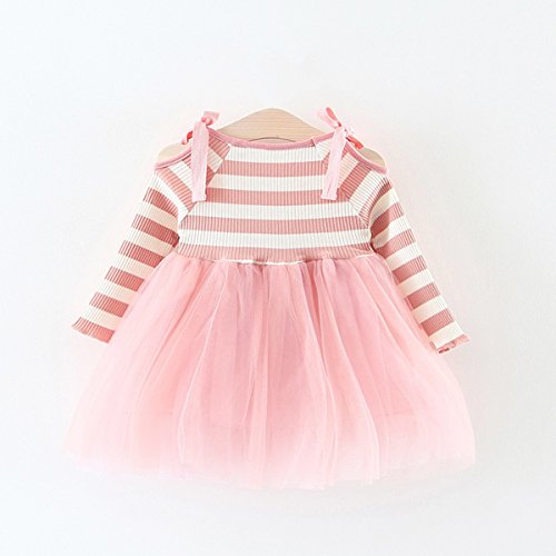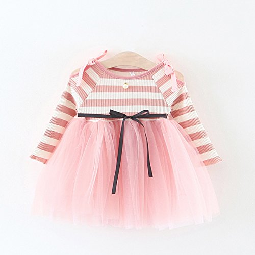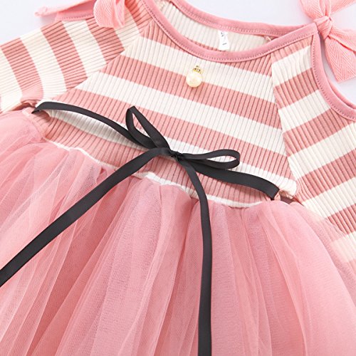 YY-Natuhi 2018新着 ベビー服 子供服 女の子 ワンピース ドレス チュール 肩出し おしゃれ かわいい 長袖 キッズ服 お出かけ 通園 入園式 入学式 発表会 春 結婚式 チュニック リボン (90cm, 1ピンク)