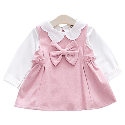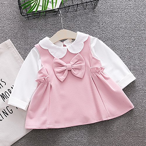 YY-Natuhi ベビー服 子供服 女の子 ワンピース ブラウス 二点セット かわいい 長袖 キッズ服 ドレス サロペット おしゃれ トップス お出かけ 通園 入園式 入学式 発表会 春 丸襟 リボン 新生児 (80cm, 1ピンク)