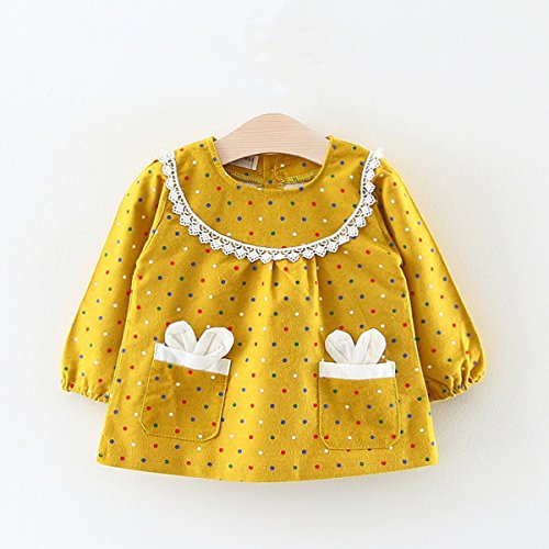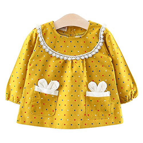 YY-Natuhi ベビー服 子供服 女の子 ワンピース ドレス ドット柄 おしゃれ かわいい 長袖 キッズ服 お出かけ 通園 入園式 入学式 発表会 春 結婚式 チュニック 丸襟 レース 新生児 (100cm, 2イエロー)