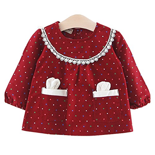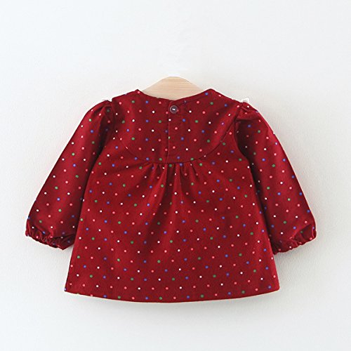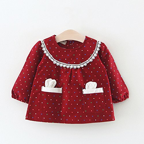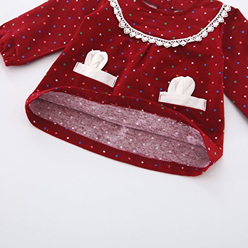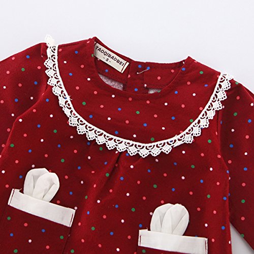 YY-Natuhi ベビー服 子供服 女の子 ワンピース ドレス ドット柄 おしゃれ かわいい 長袖 キッズ服 お出かけ 通園 入園式 入学式 発表会 春 結婚式 チュニック 丸襟 レース 新生児 (100cm, 1ワインレッド)