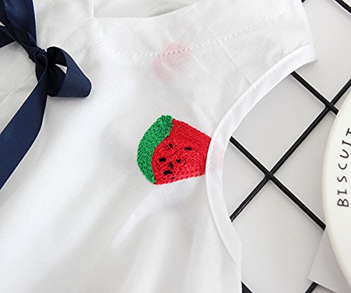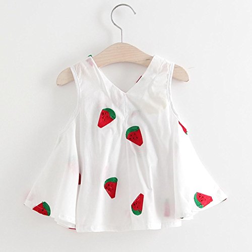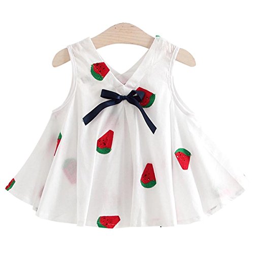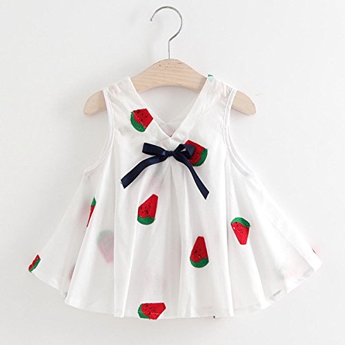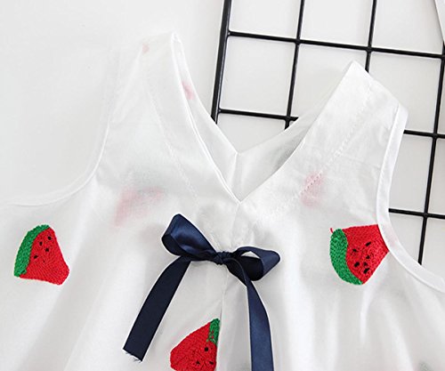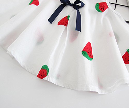 YY-Natuhi ベビー服 子供服 女の子 ワンピース ドレス 春 夏 可愛い vネック リボン 新生児 女児 白 キッズ カジュアル 袖なし ふわふわ スカート 赤ちゃん ベビースーツ 結婚式 七五三 (90cm, 2スイカ柄)