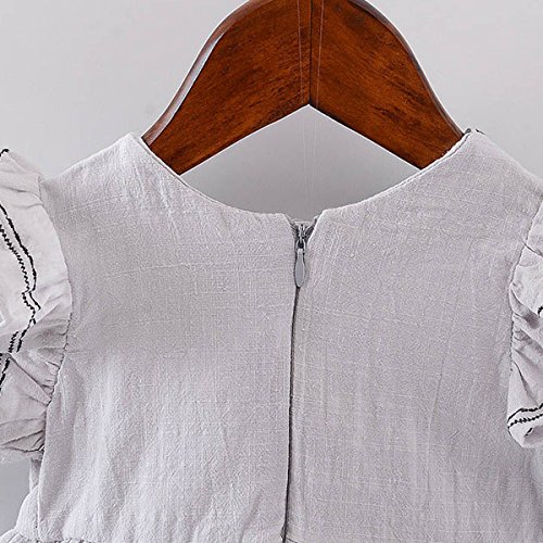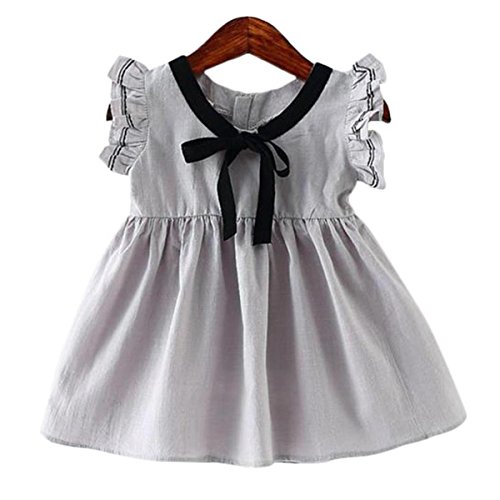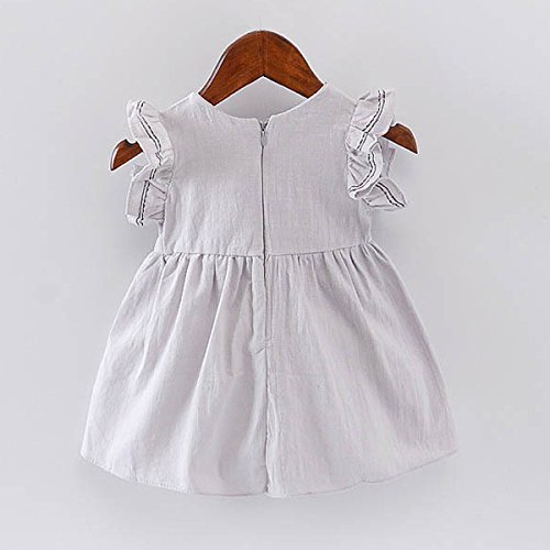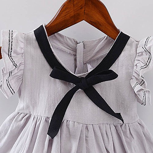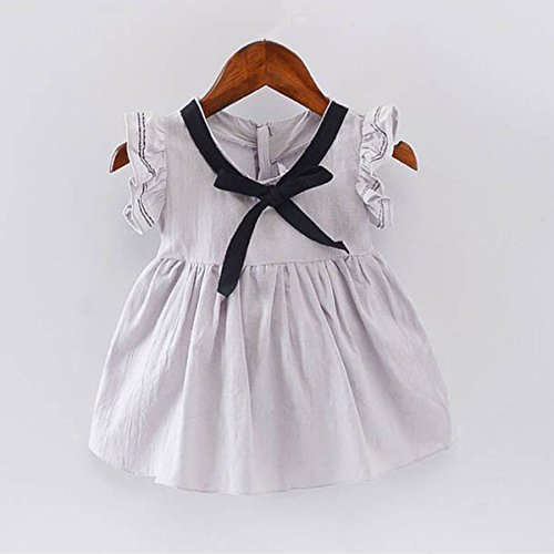 YY-Natuhi ベビー服 子供服 女の子 ワンピース ドレス フレア袖 春夏 可愛い 新生児 女児 キッズ カジュアル ノースリーブ スカート 赤ちゃん ベビースーツ リボン 七五三 通園 通学 (100cm, 2グレー)