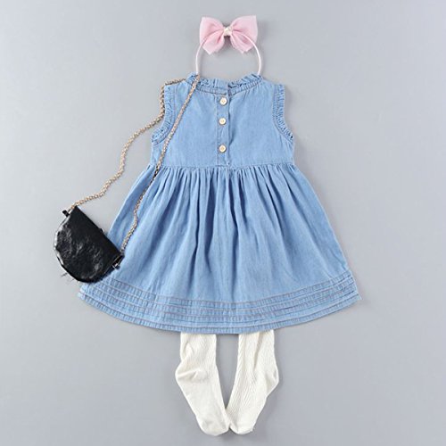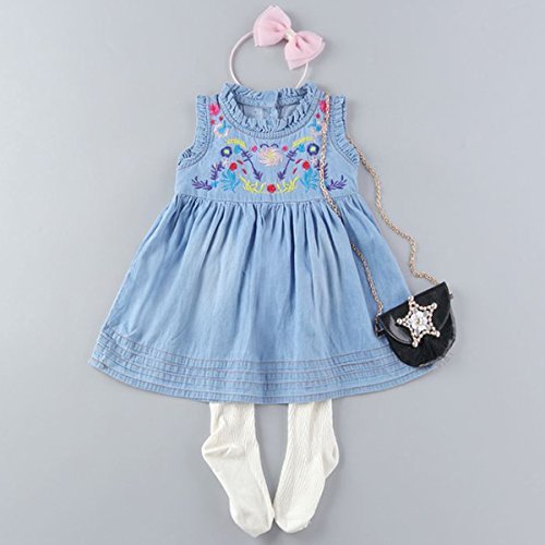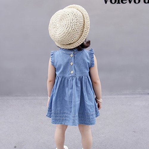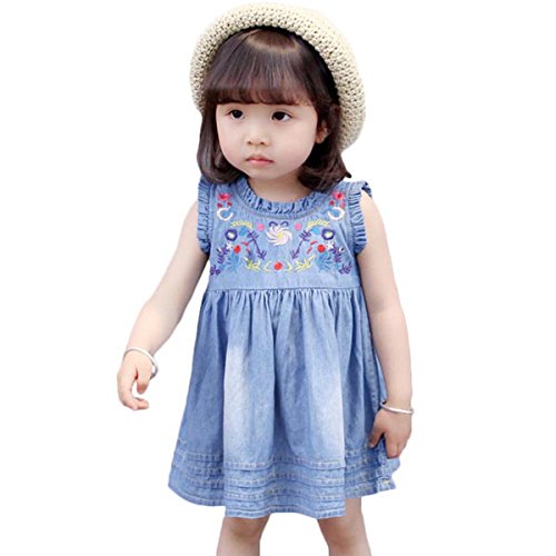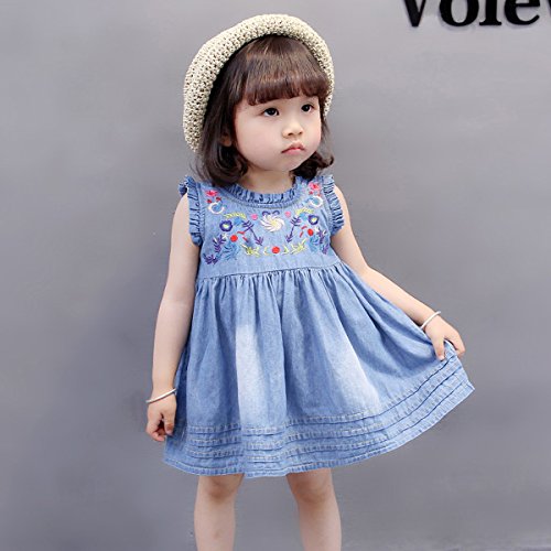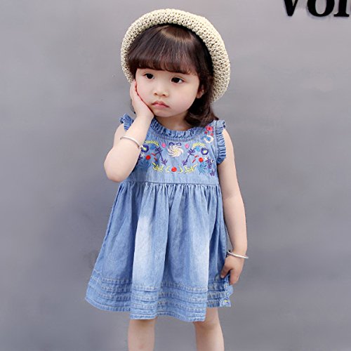 YY-Natuhi ベビー服 子供服 女の子 ワンピース ドレス カジュアル デニムワンピース 春夏 刺繍 花柄 キッズ 新生児 赤ちゃん 袖なし 女児 可愛い 通園 通学 100%綿 (110cm)
