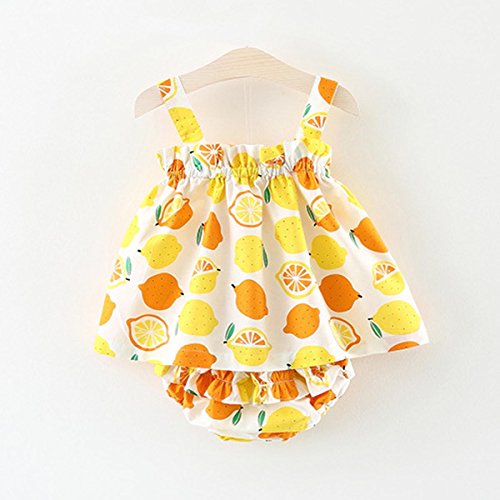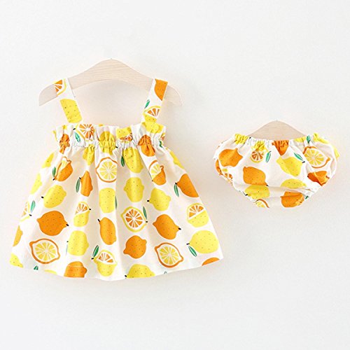 YY-Natuhi ベビー服 女の子 新生児 春夏 フルーツ柄 子供服 ワンピース ドレス パンツ付き 二点セット キッズ 女児 タンクトップ かわいい 綿 入園式 卒園式 赤ちゃん 七五三 結婚式 (90cm, 1レモン柄)