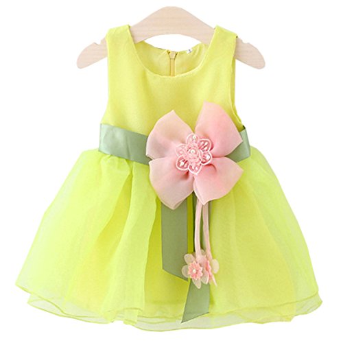 YY-Natuhi ベビー服 子供服 女の子 ワンピース フォーマル ドレス プリンセス キッズ 女児 かわいい ふわふわ スカート 入園式 卒園式 赤ちゃん 七五三 ベビースーツ 春夏 ノースリーブ 花 (70cm, 3イエロー)