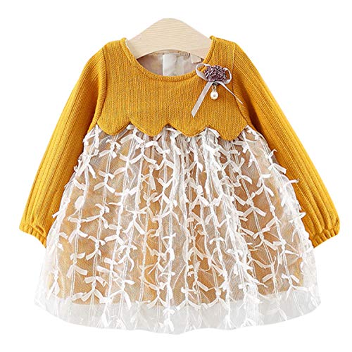 YY-Natuhi ベビー服 子供服 女の子 ワンピース ドレス ニット セーター 重ね着風 キッズ チュニック おしゃれ 可愛い 長袖 フォーマル 春秋冬 新生児 入園式 入学式 発表会 結婚式 プリンセス (80cm, 2ブラウン)