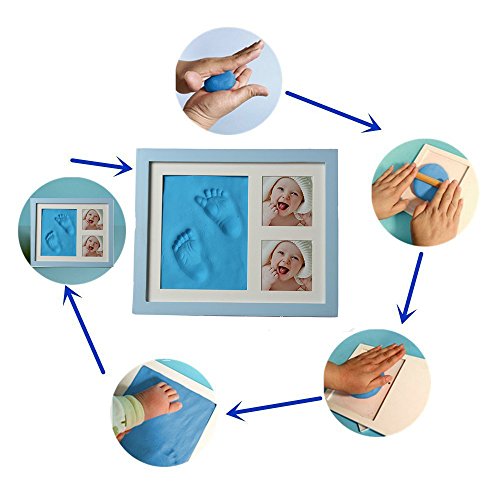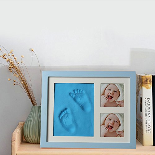 YYlife ベビーフレーム 赤ちゃん手形 足形 フォトフレーム ベビープリント【写真立て】粘土無毒で安全 赤ちゃん 出産祝い 内祝い ベビー記念品 ベビーギフト男女兼用 (ブルー)