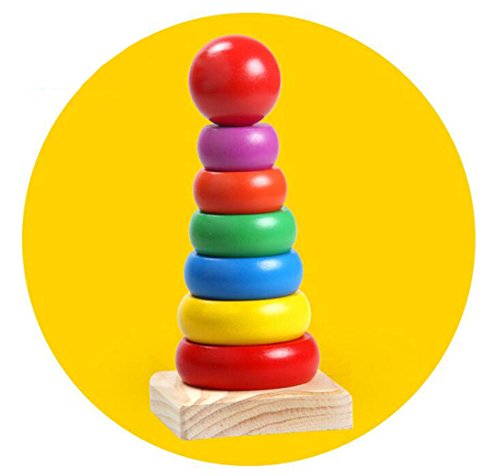 - 「タワーがさね」は違う6個のカラフルな木製ループと1個のまるボールをかさねて遊ぶことにより、大きさの違いの認識や色の違いの理解力を学ぶことができます。
