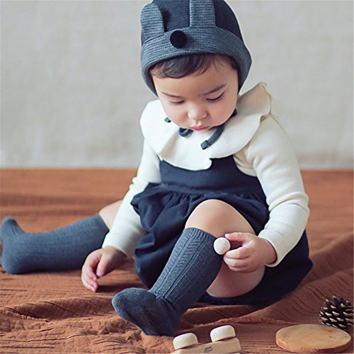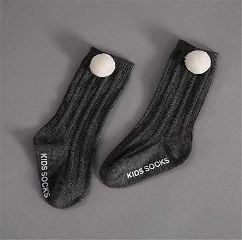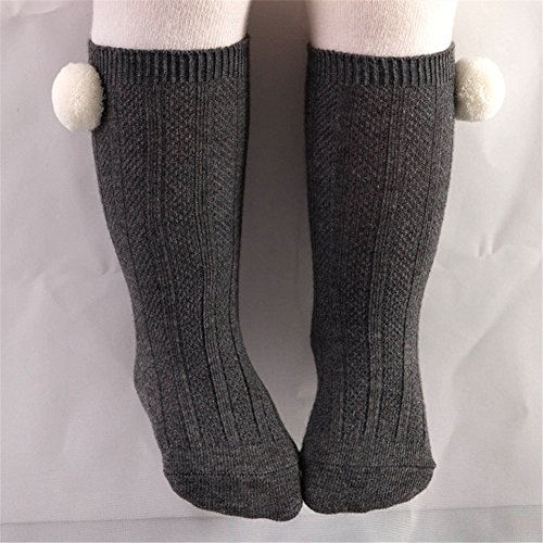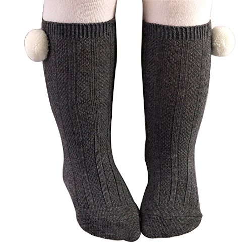 Yangelo 靴下 キッズ ベビー ハイソックス 滑り止め付き ソックス ポンポン付き 子供 キッズ 可愛い 女の子 脱げにくい仕様 秋 冬 0-4歳 size 0-2歳(約11cm) (ダークグレー)