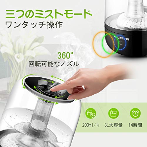 - ❤【3L大容量&洗濯容易】三つのミストモード、3Lの水タンク、200ml/時間のミスト量、連続14時間稼動可能で、頻繁に水を交換する手間がないです。●弊社の卓上加湿器は水注入口が幅広いですので、水タンクに手を入れてきれいに洗濯することができます。