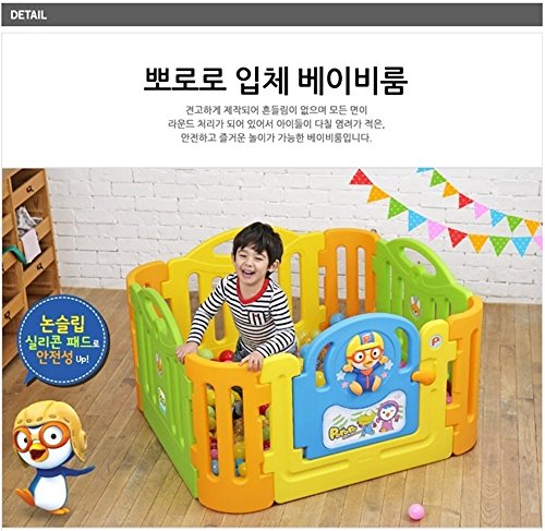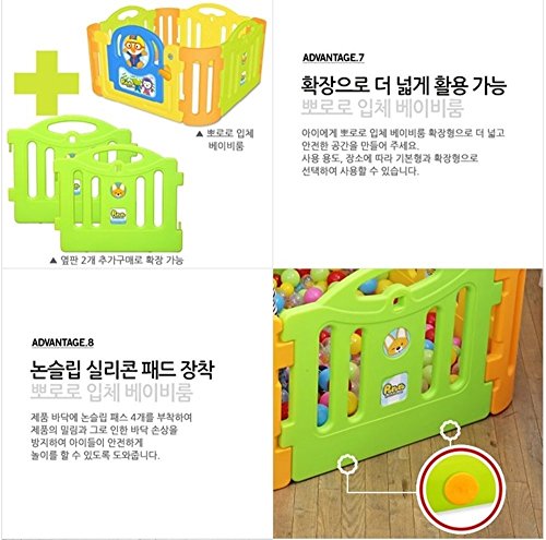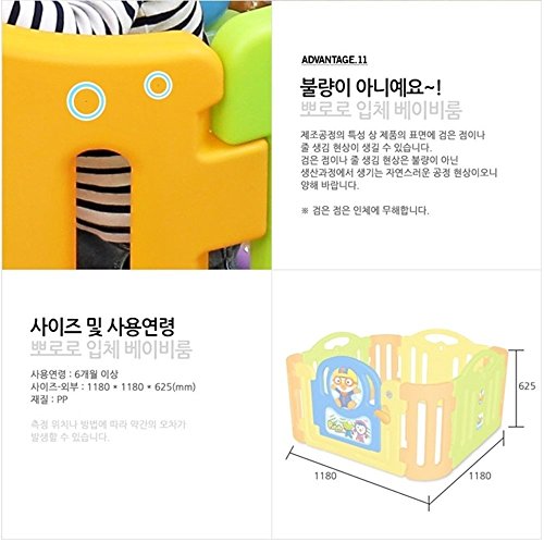 (ヤヤ) Yaya ポロロ 立体 ベビールーム, ベビーサークル, キッズランド スクエア, キッズゾーン, 丸い角, 設置時外寸:約幅118×奥行き118×高さ62.5cm 4.6kg, Made in Korea, 一週間内に到着 + FREE Gift (Ball Pen) (海外直送品) [並行輸入品]