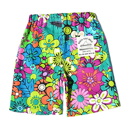 アウトドア・リゾートバカンス系デザインの 「イエローフェイス」 ストレッチハーフパンツ"サイケフラワー"のご紹介です サイケデリックなカラー使いのフラワーデザイン ストレッチの効いたコットン素材。 伸縮性もあり穿き心地も楽々です。 リゾートな雰囲気で、夏に良く合うデザインです。 ポケットはフロントに二つと、バックに一つ付きます。 ウエストは総ゴム。 脱ぎ穿きもしやすいです イエローフェイスならではの、アウトドアライクな世界観をお楽しみいただけます。 素材 コットン95% ウレタン5% サイズスペック(目安) 80cm ウエスト19 総丈28 渡り16 90cm ウエスト19.5 総丈29 渡り17 100cm ウエスト21 総丈31.5 渡り18 110cm ウエスト21.5 総丈33.5 渡り19 120cm ウエスト22 総丈35.5 渡り19.5 ※個体差がありますので、目安としてお考えください。