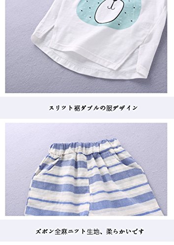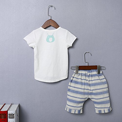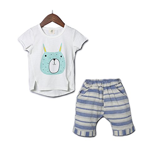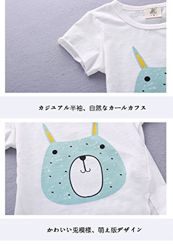 YiYa 夏 子供服 ボーイズ 男の子 ウサギ 半袖Tシャツ&ショートパンツ キッズ 子供 ベビー服 上下セット 2点組 かっこいい 普段着 子供 0-4歳 幼児 キッズ服 (90cm, ホワイト)