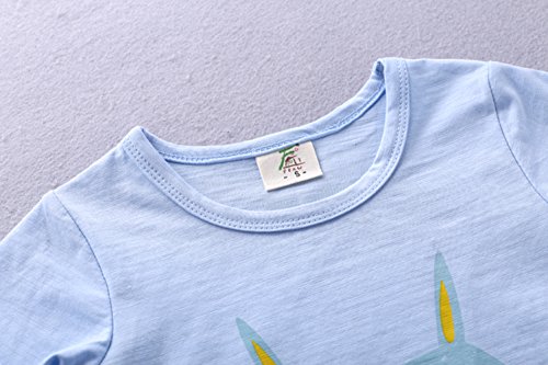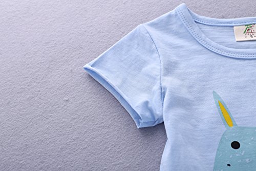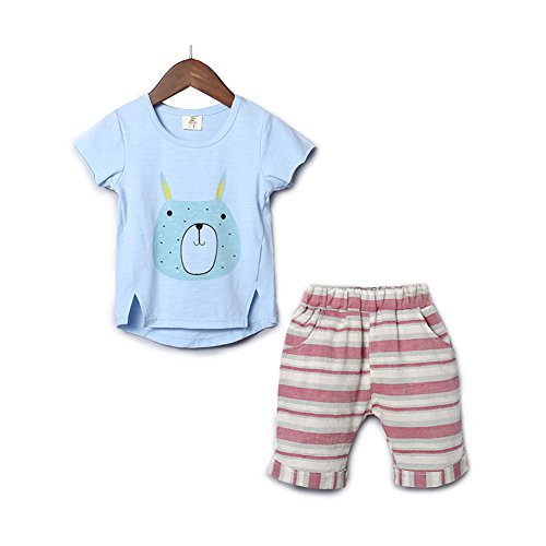 YiYa 夏 子供服 ボーイズ 男の子 ウサギ 半袖Tシャツ&ショートパンツ キッズ 子供 ベビー服 上下セット 2点組 かっこいい 普段着 子供 0-4歳 幼児 キッズ服 (100cm, ブルー)