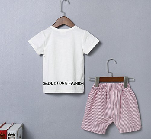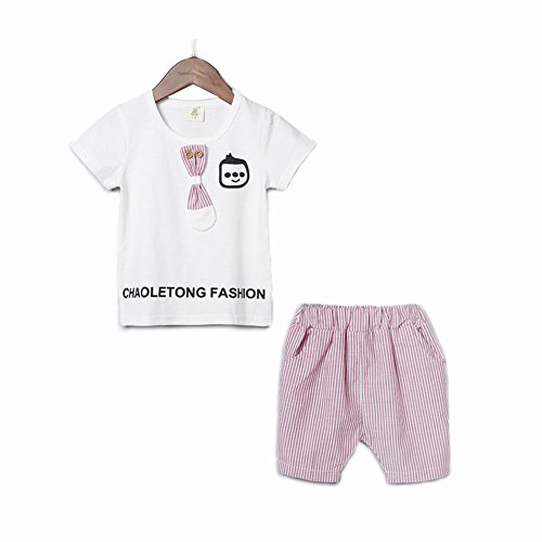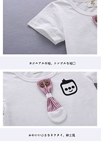 YiYa 子供服 男の子 ボーイズ ベビー服 赤ちゃん ベビー コットン100% 半袖 Tシャツ パンツ セットアップ 夏 1-3歳 ツーピース 通気性 ホワイト/ピンク お出かけ 出産祝い 可愛い 蝶結び キャラクター (80cm, ホワイト)