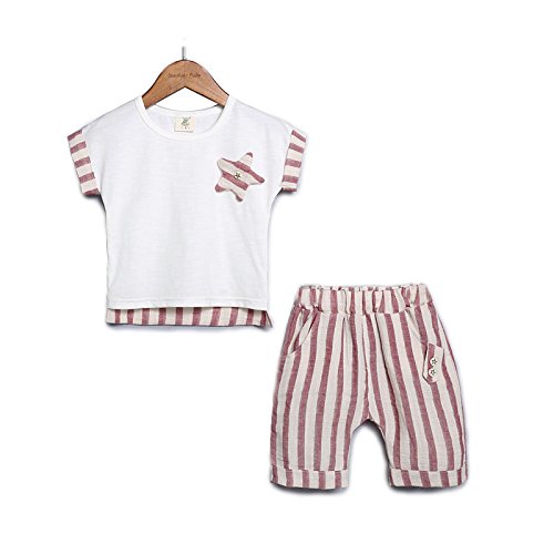 YiYa 子供服 男の子 ベビー服 赤ちゃん ベビー キッズ セットアップ 上下 2点セット 半袖 Tシャツ 男児ショートパンツ 子供 可愛い ヒトデ ストライプ 夏 カジュアル お出かけ 出産祝い 1-4歳 80-110cm (80cm, ホワイト)