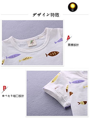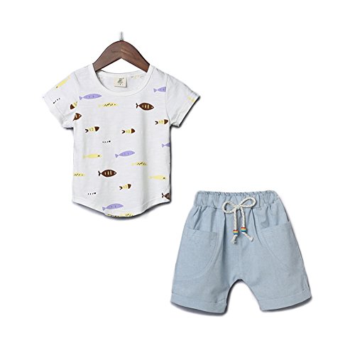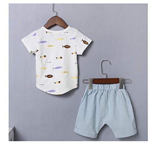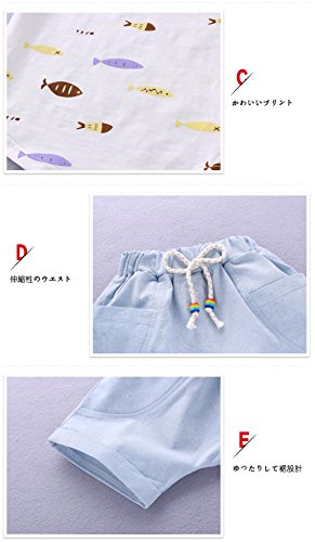 YiYa 子供服 ベービー服 セットアップ 男の子 男児 赤ちゃん べビー セット服 セットアップ 2サイズ選べる ブルー/ホワイト 小魚半袖Tシャツ+パンツ 誕生日 子供の日 遊園地に 上下 2点セット 夏 1-3歳 80-110cm 子供 薄いセクション 綿 上着&ズボン キッズ 幼児 (100cm, ホワイト)