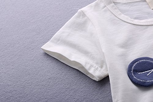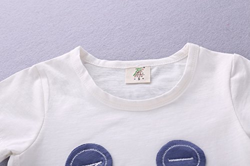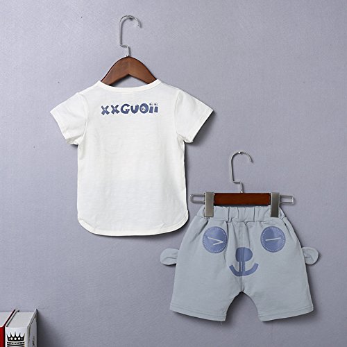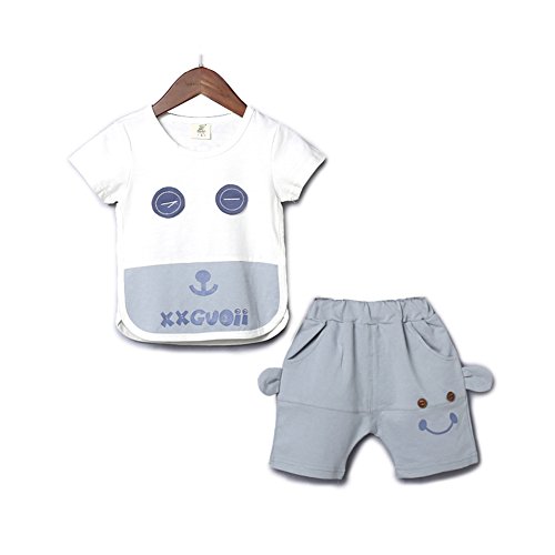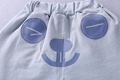 YiYa 子供服 2点セット 夏 女の子 男の子 ベビー 赤ちゃん かわいい 上着&ズボン キッズ 子供カジュアルな服 セットアップ スウェット 半袖 ショートパンツ スポーツウェア カジュアル 0-4歳 80-110cm 薄いセクション 綿 上下セット 笑顔パターン (90cm, ブルーグレー)