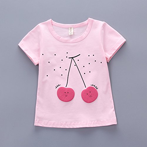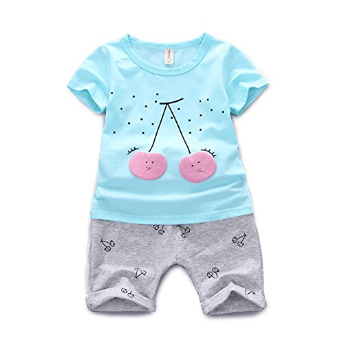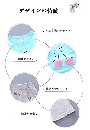 YiYa 子供服 女の子 女児 セットアップ キッズ ベビー服 夏 上下 2点セット 上着&ズボン 丸首 半袖Tシャツ+5分ズボン 可愛い チェリーパターン こども 子供 カジュアル カートゥーン子供服 80-110cm ベビー 赤ちゃん 幼児 (100cm, ブルー)