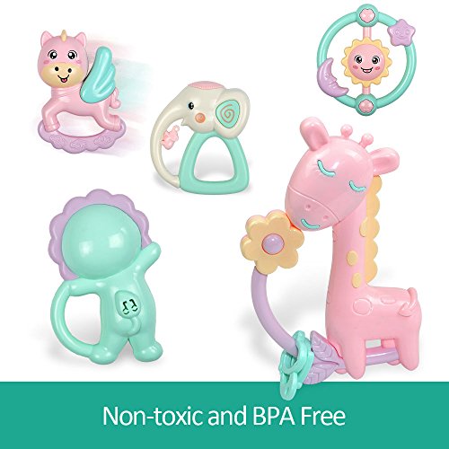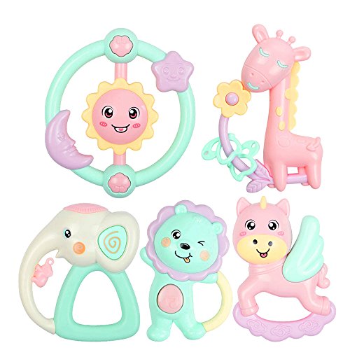 5pcsベビー幼児用おもちゃラトル Baby Lovely rattle ハンドシェイキングベル 6 – 12ヶ月Baby Rattles シェイプドハンドベル幼児教育ベビーカー乳母動物のおもちゃ 動物 ベビーカー おもちゃ 飾