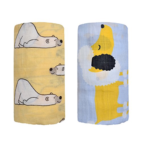 Qav Juh 新生児 2枚セット 竹綿 高級ベビー用ソフトモスリン ガーゼ ベビーブランケット120x120cm 出産祝い スワドル (ポーラークマの子犬)