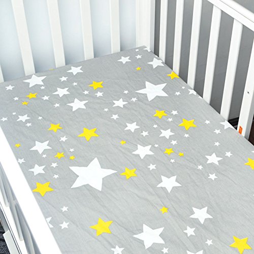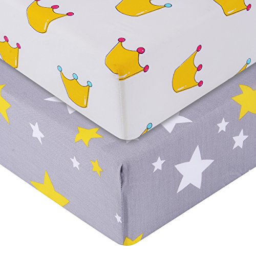 Qav Juh 2枚 セット ベビーベッド用 寝具 シート シーツ マットレス 布団 カバー 敷布団カバー (星 & 王冠)