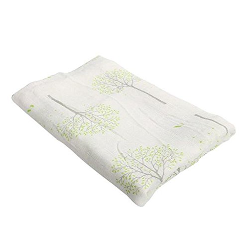 Qav Juh ガーゼブランケット 1レイヤー ベビー モスリン スワドル ブランケット 竹繊維100% 多機能 おくるみ バラ売り 2枚 出産祝い (緑樹 & 橘花)