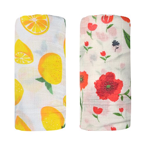 2枚セット新生児 ギフト おくるみ ベビーブランケット 120x120cm (ローズ & レモン)
