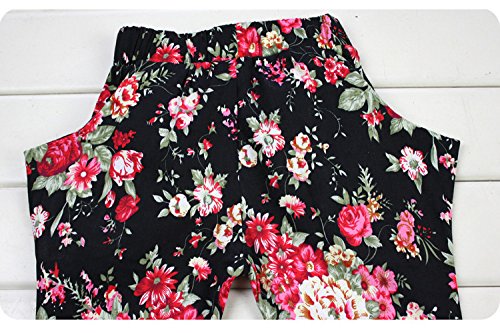 YideaHome ベビー服 子供 女の子 夏 花柄 パンツ ブラックシャツ 花柄オーバーオール 花柄スカーフ 3点セット