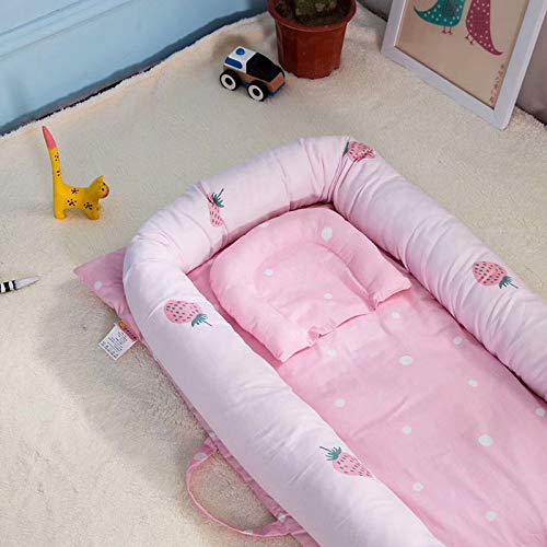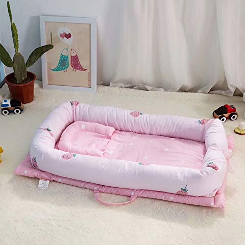 YideaHome ベッドインベッド ベビーベッド ベッドガード 添い寝ベッド 持ち運びに便利 新生児用 ベビーベッド ベッドマット 枕付き 折り畳み式 おむつ換え (ピンク)
